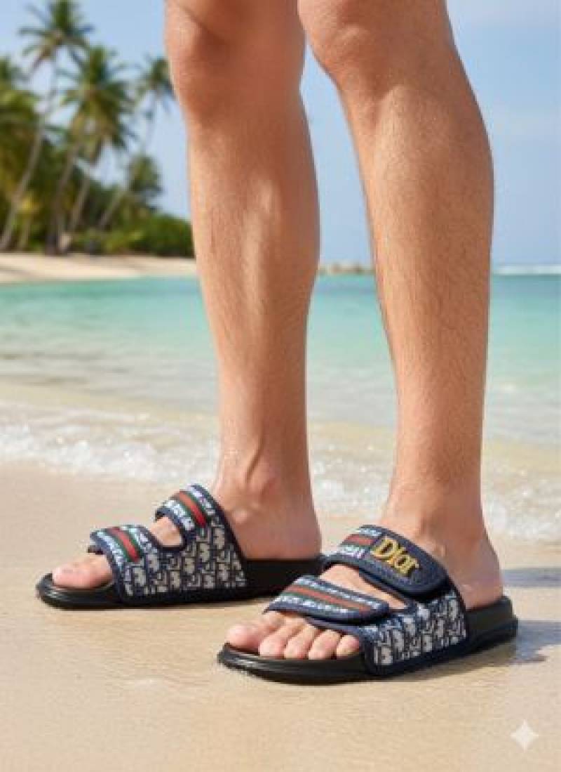 Dior-slide-blue-red-oblique-embroidered-cotton