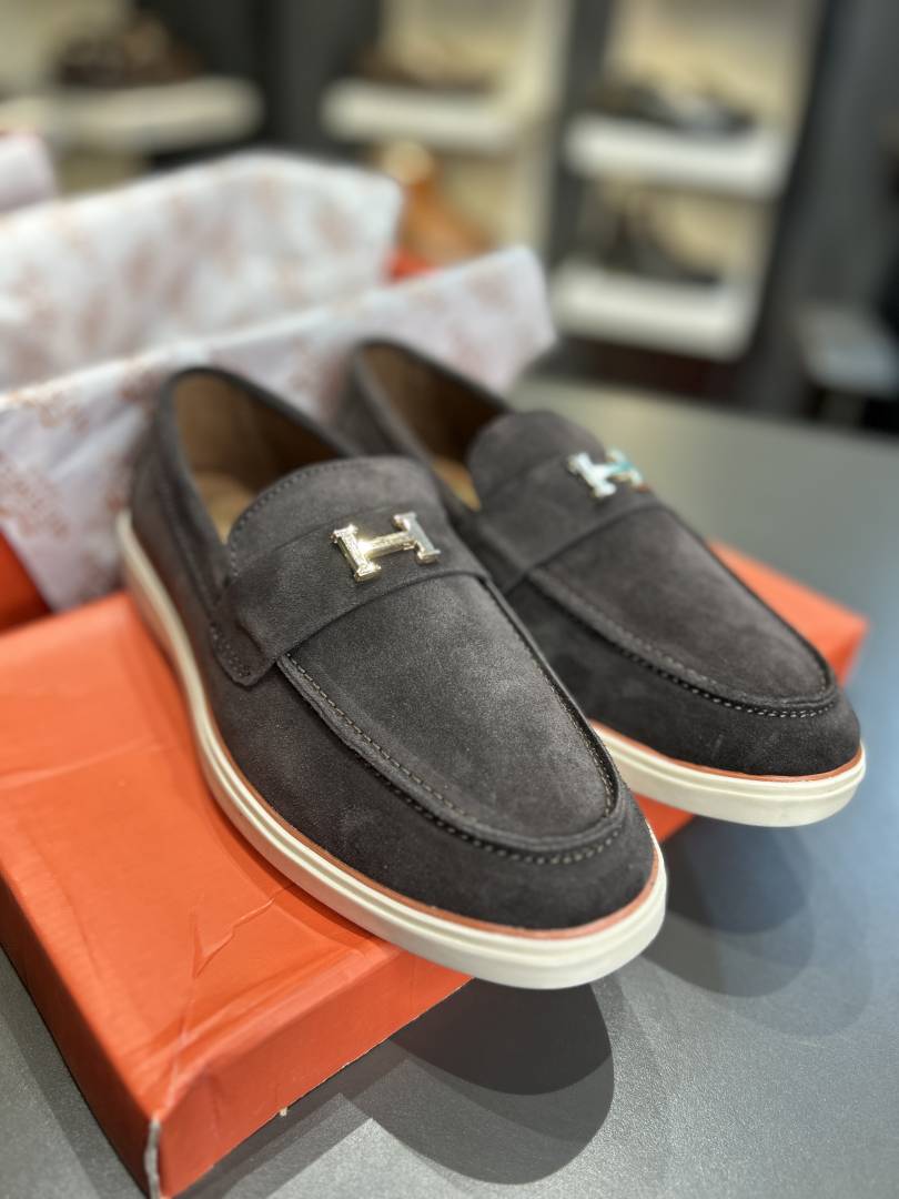 Hermes_Embroidery logo Grey 100% Geniune suede leather