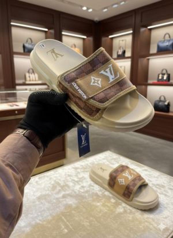 Louis-Vuitton-brown crem Premium Quality Mens Flip-flops