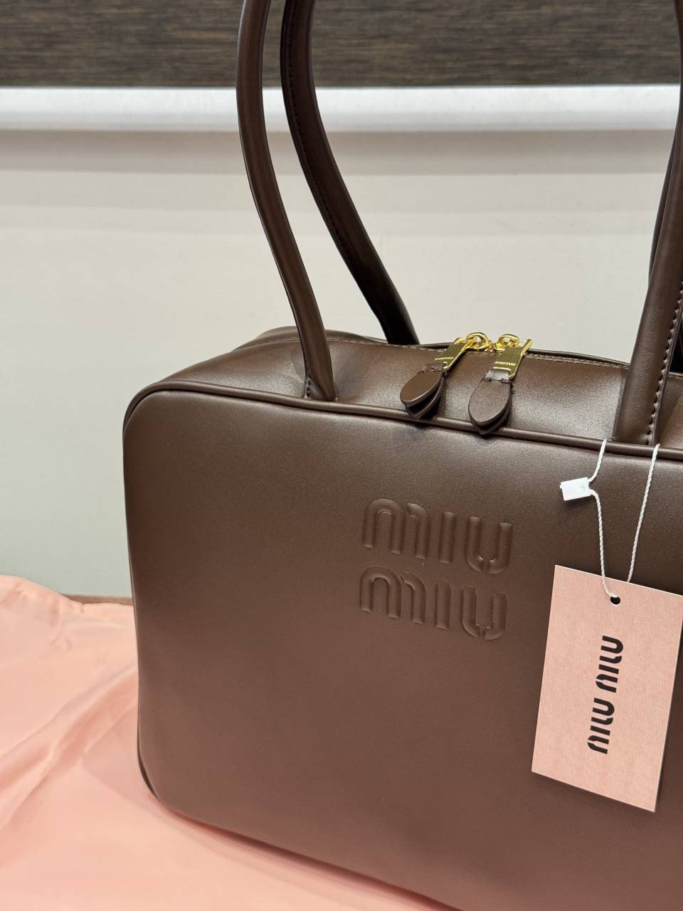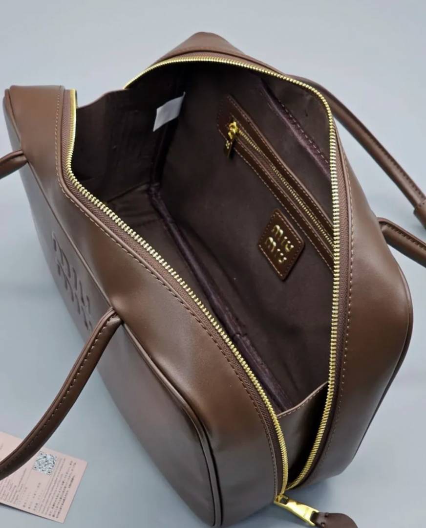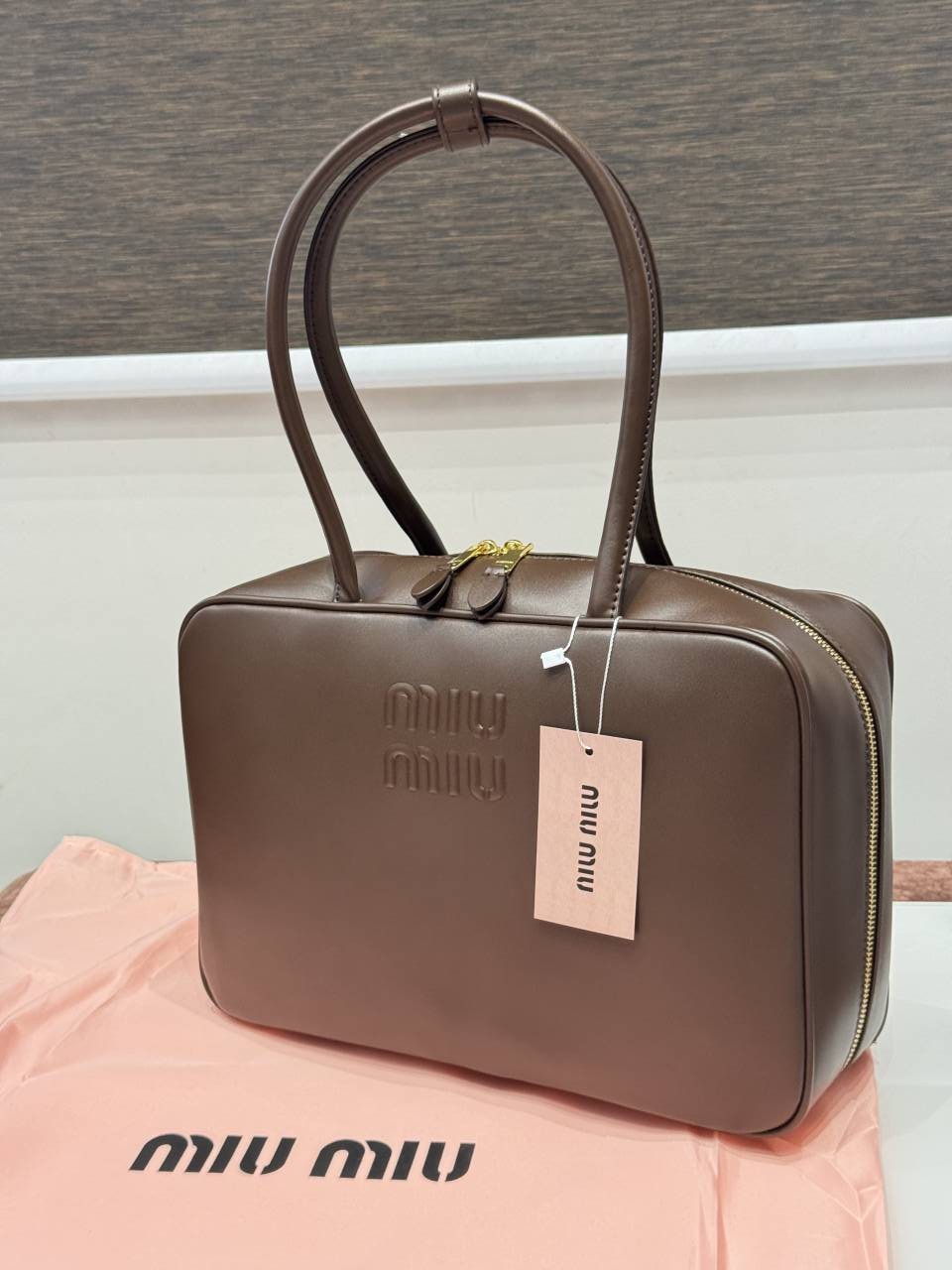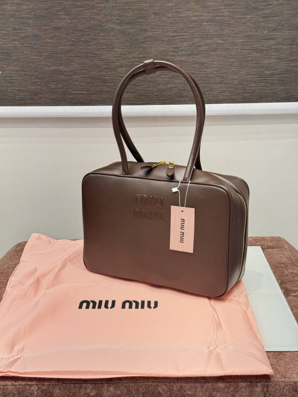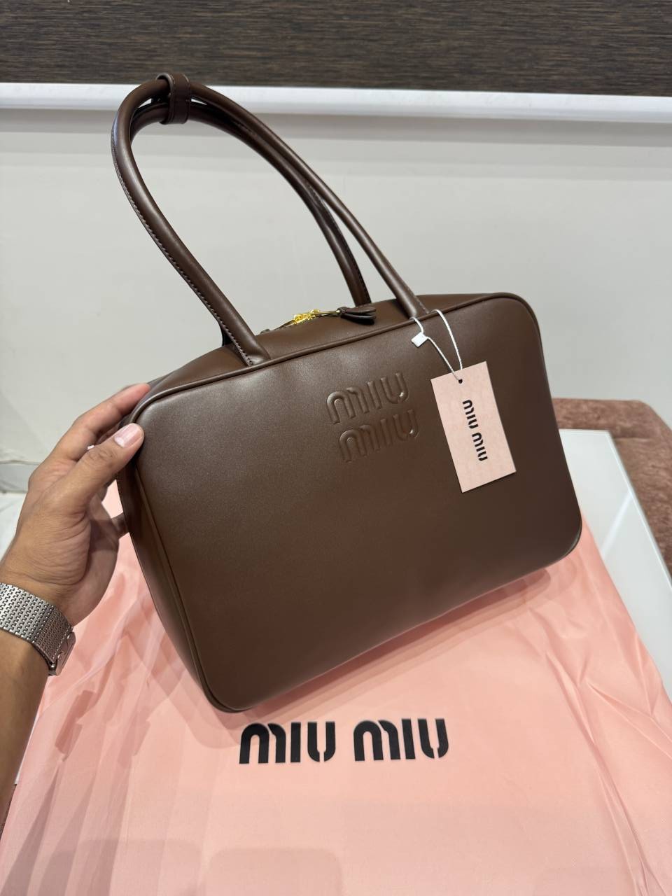 Miu Miu Beau Logo Debossed Leather Bag 2159 Coffee