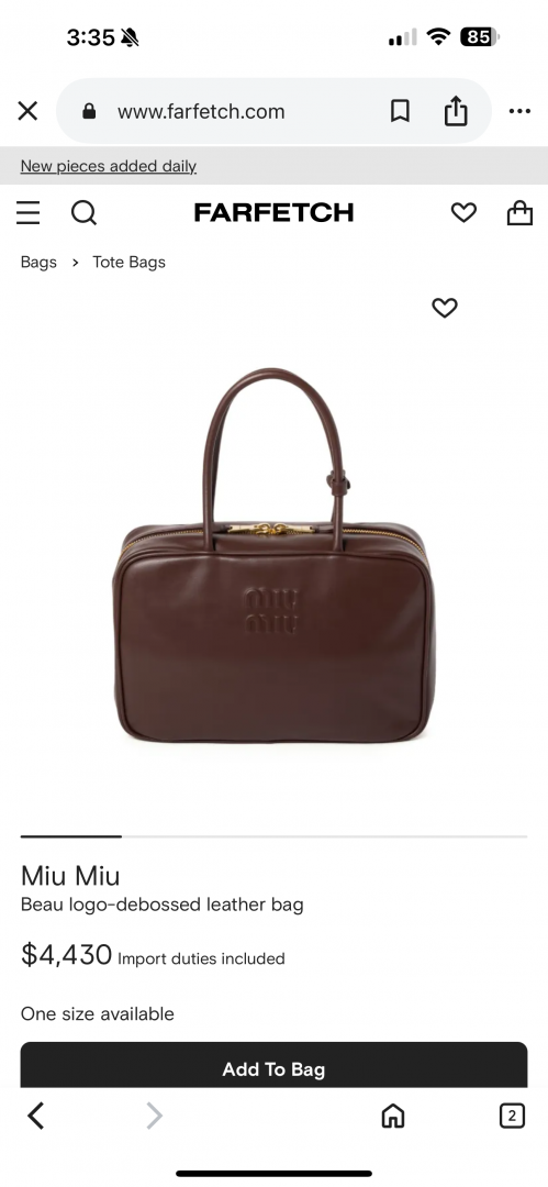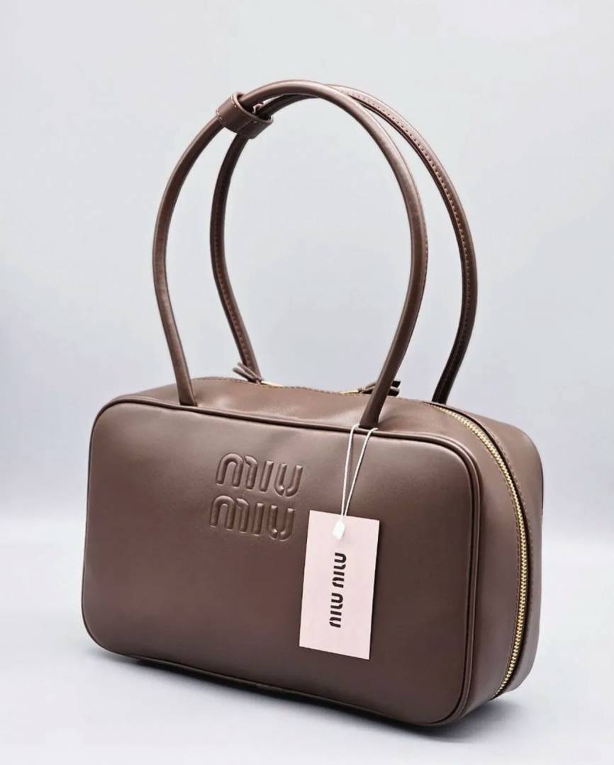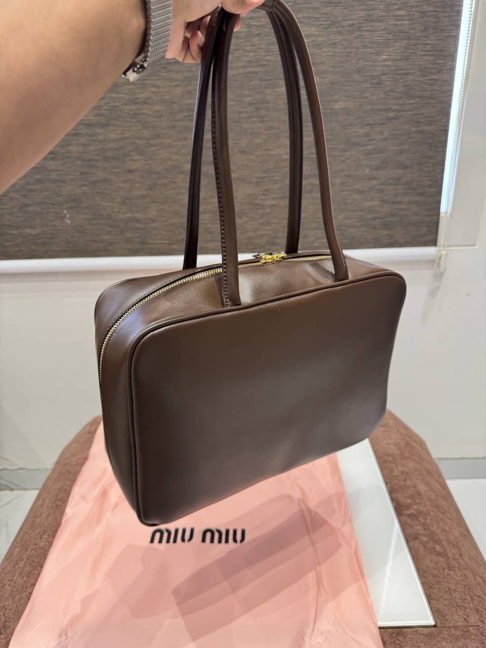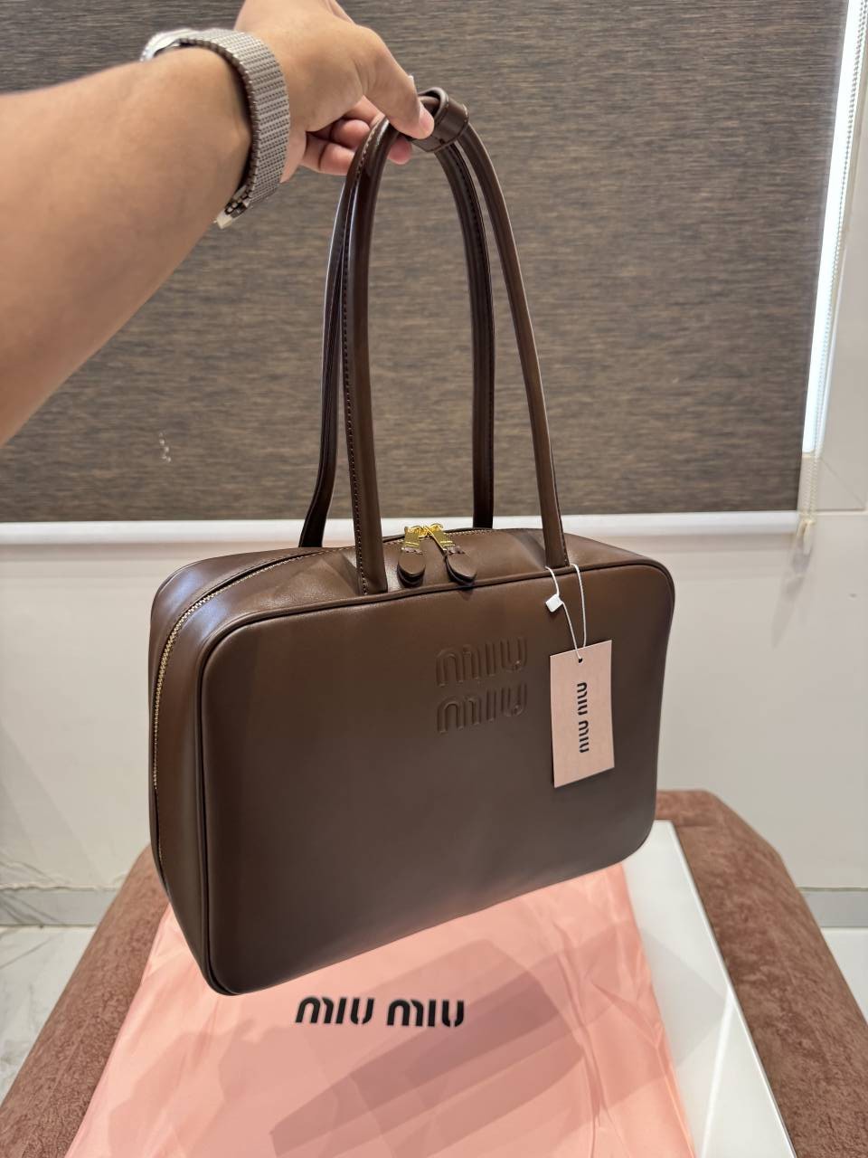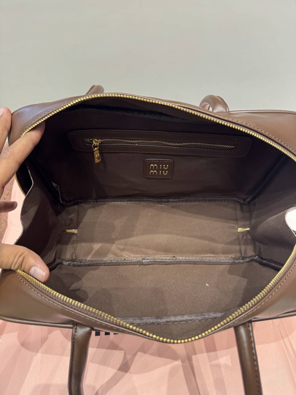 Miu Miu Beau Logo Debossed Leather Bag 2159 Coffee